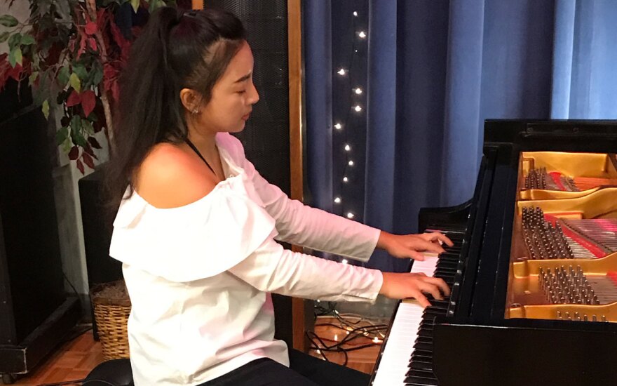 Pianist Han Wang, completing her doctorate at KU, played a Chopin Mazurka (Op.30/4),
